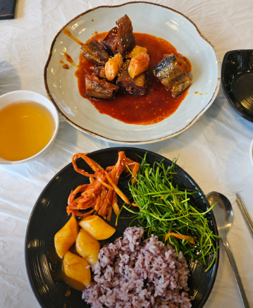 코다리찜 외에도 다양한 곁들임 메뉴를 제공하여 식사의 만족도를 높입니다. 주로 코다리찜과 잘 어울리는 반찬과 국이 제공되며, 이곳의 곁들임 메뉴들은 코다리찜의 매운맛을 중화시키는 역할을 합니다.
